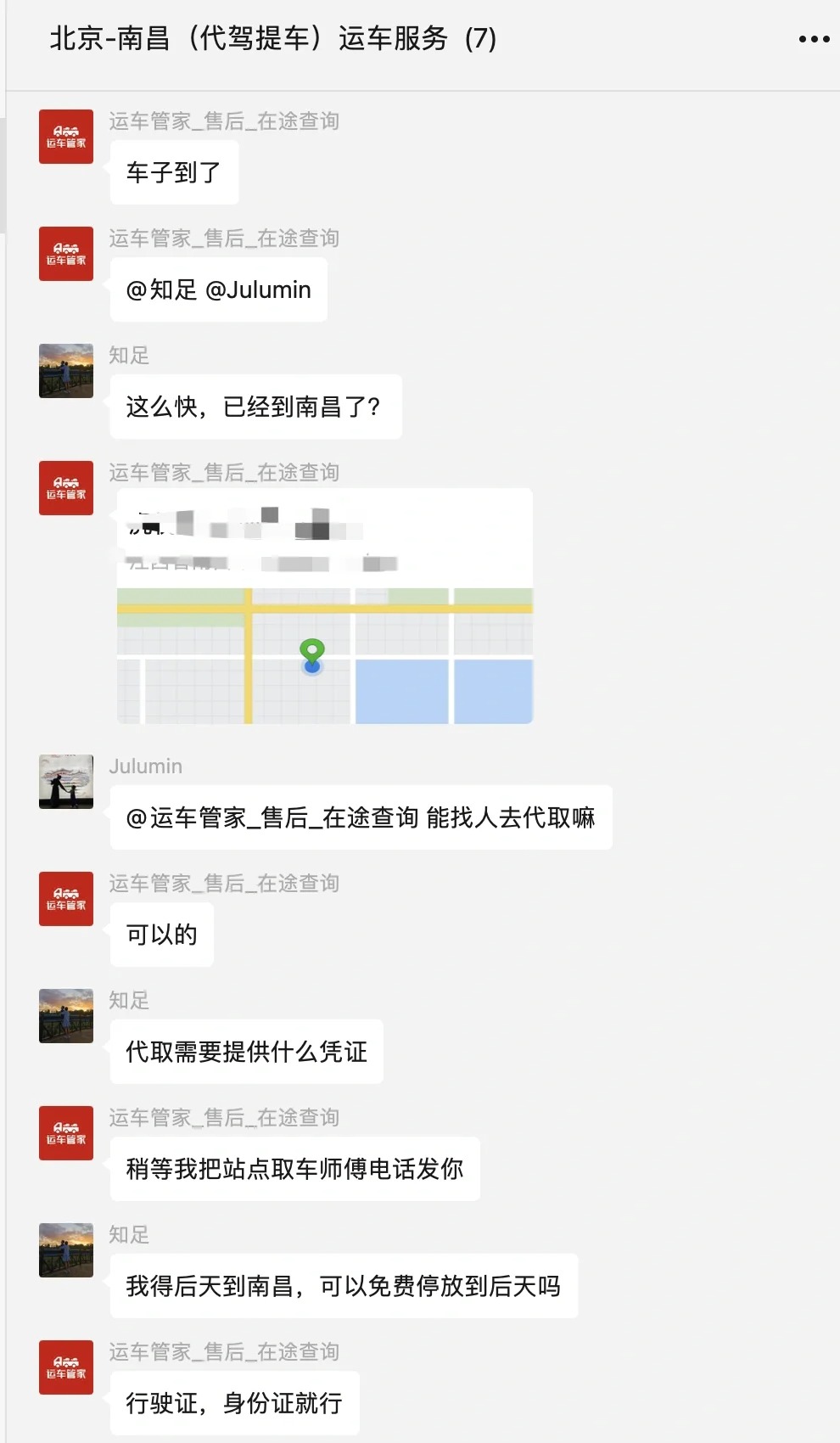最后確定,第二天北京代駕取車,到南昌后客戶去物流站點(diǎn)自提